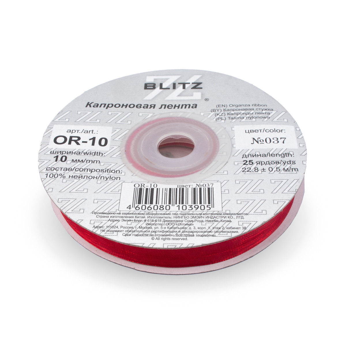 Лента капроновая OR-10 №037 т.красный