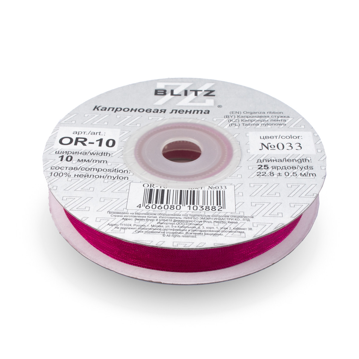 Лента капроновая OR-10 №029 ярко-розовый