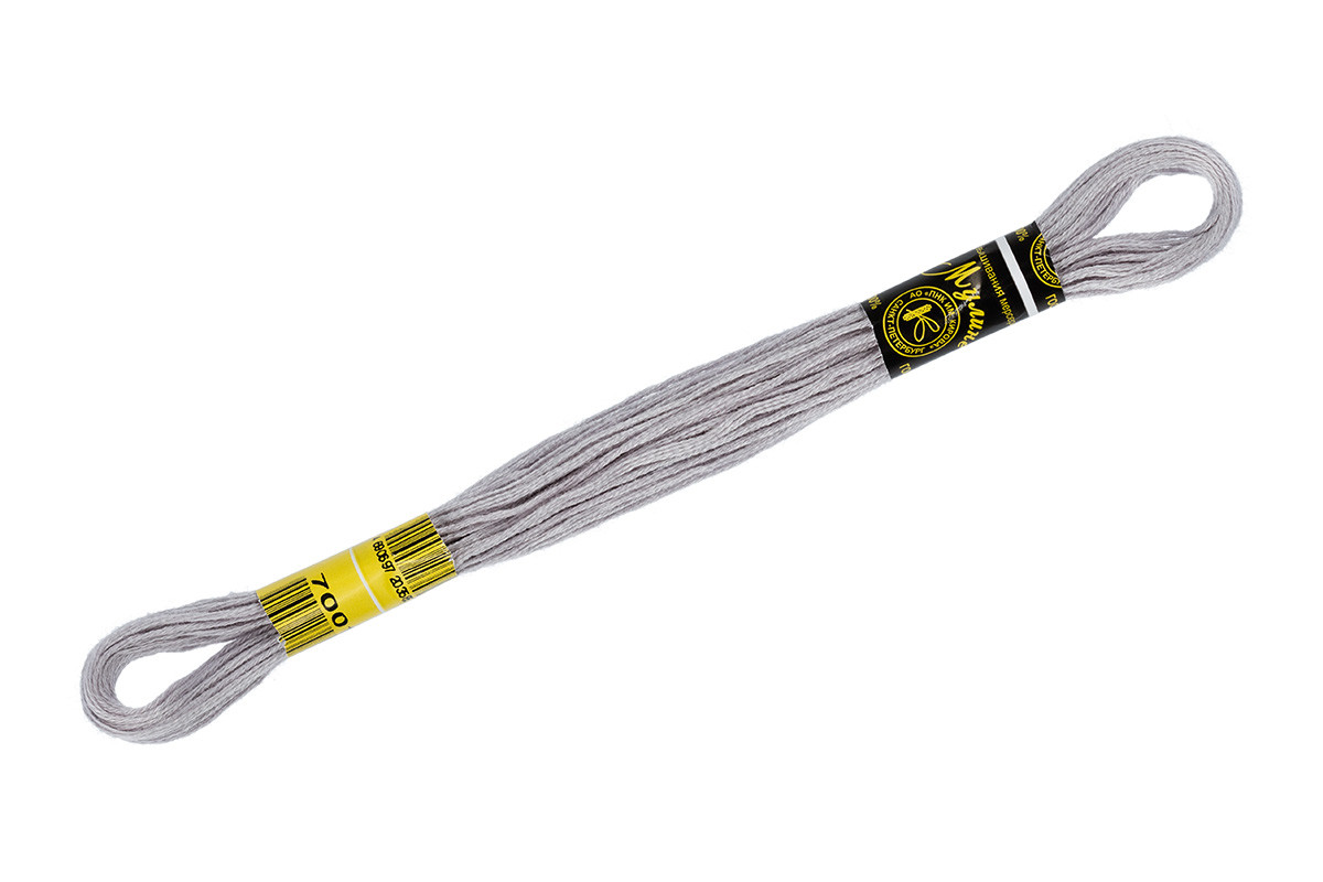 Нитки для вышивания " ПНК им. Кирова" мулине 100% мерсеризованный хлопок 8 м №7002 св. серый
