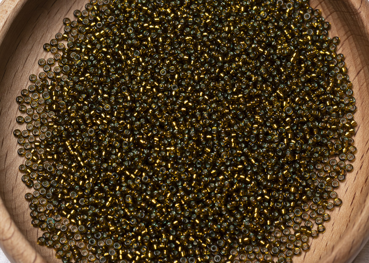 Бисер Япония MIYUKI Seed Beads 15/0 5г 1421 окрашенный золотая оливка серебряная линия внутри
