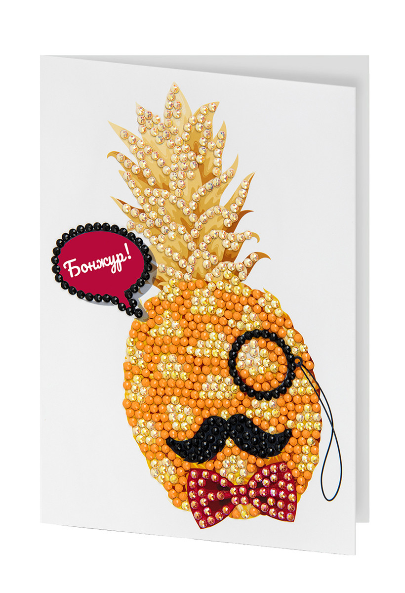 Кристальная ( алмазная) мозаика " ФРЕЯ" ALVO- 607 открытка " Ананас, бонжур!" 10. 5 х 14. 8 см
