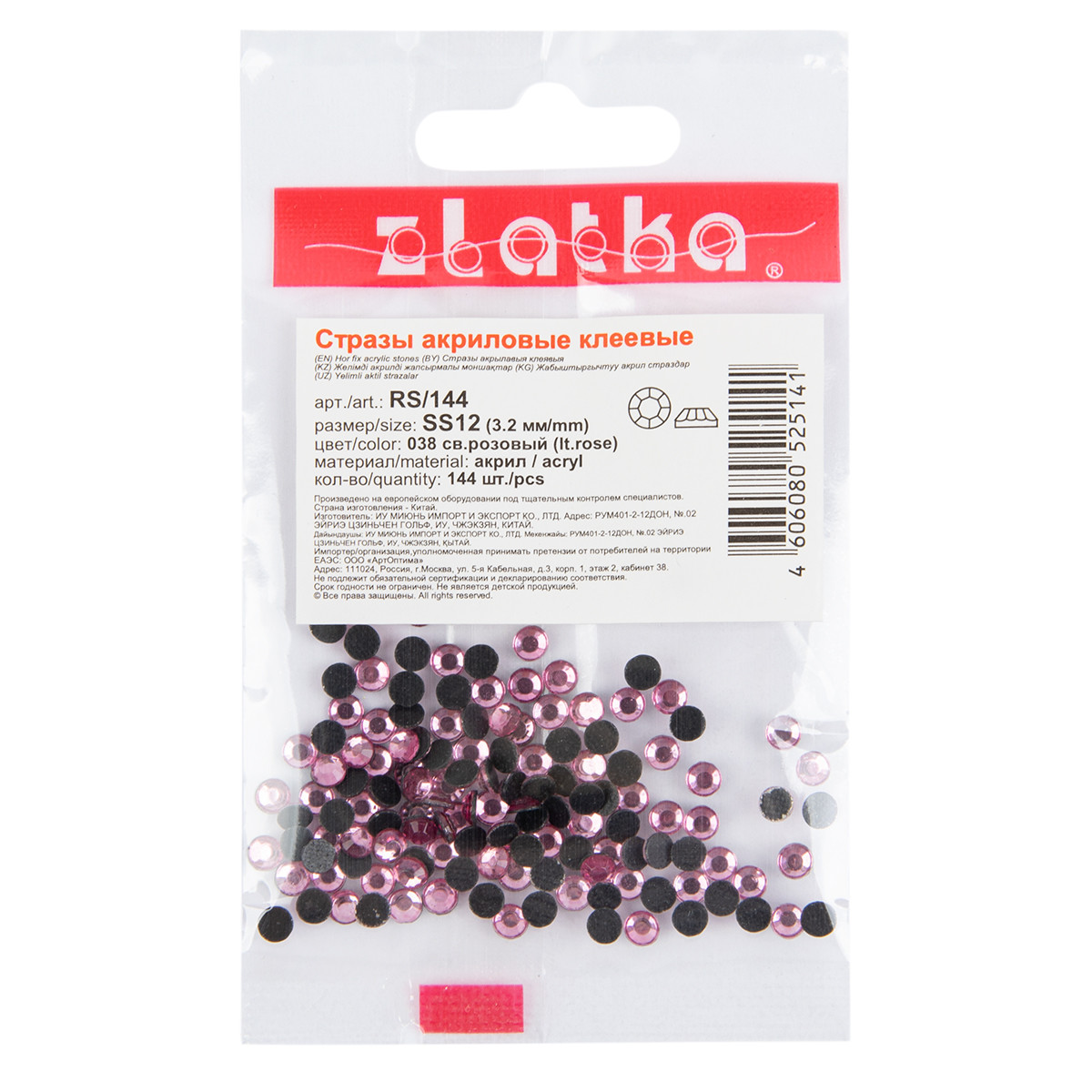 Страз клеевой " Zlatka" RS/ 144 SS12 3 - 3. 2 мм акрил 144 шт в пакете с еврослотом 019 св. серый ( black diamond)